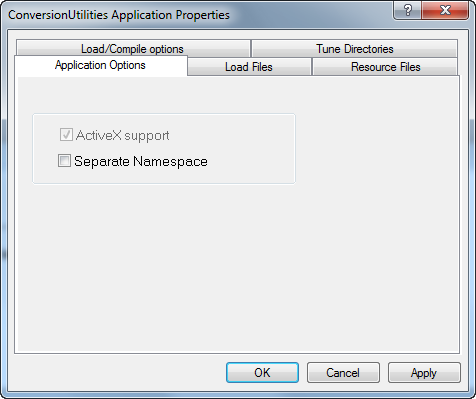 创建单独的命名空间 VLX 并包括 ActiveX 支持。