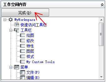 将工作空间置为当前、创建或修改工作空间,并将工作空间从局部 CUIx 文件输入主 CUIx 文件。