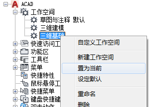 • 从自定义用户界面 (CUI) 编辑器中将工作空间置为当前:
