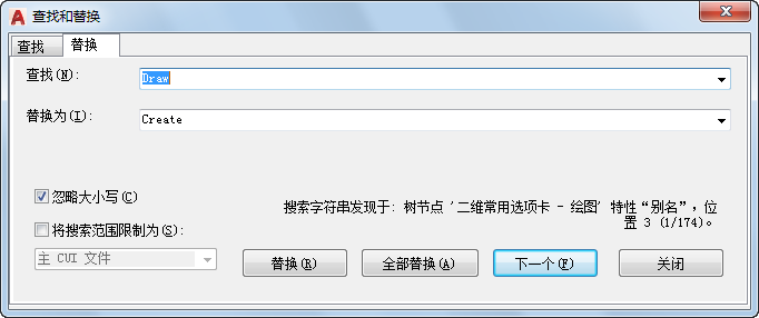 搜索自定义 (CUIx) 文件中命令和文字的步骤