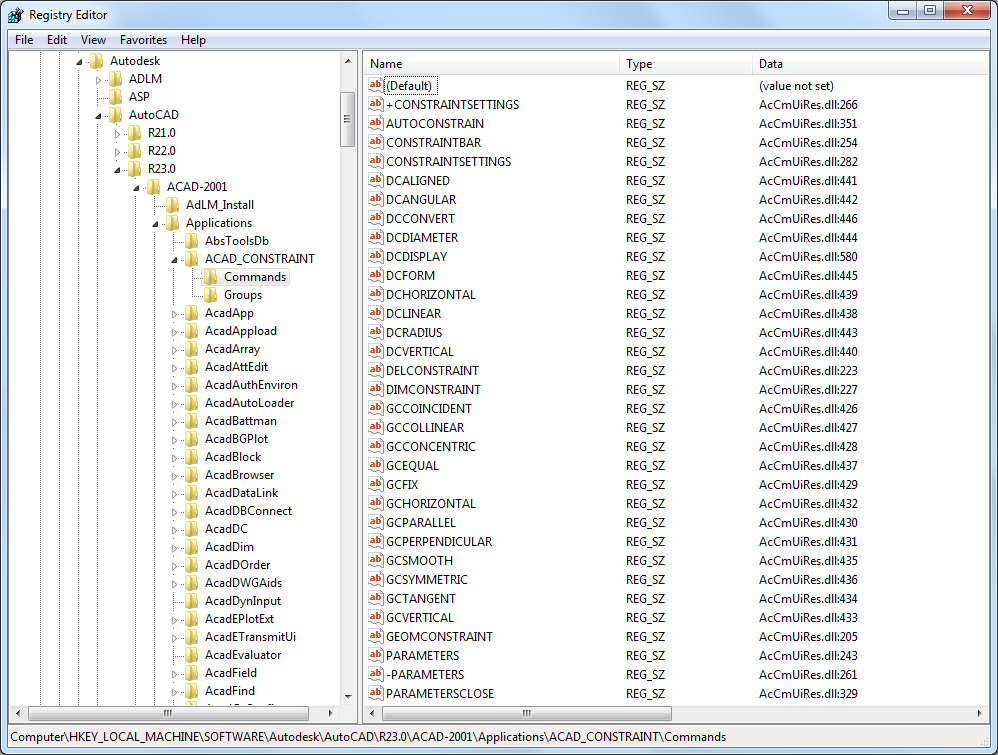 水平要求 适用于ObjectARX、.NET 和 ObjectDBX 模块 在注册表的 AutoCAD 部分中注册逻辑应用程序名称。(可选)请考虑向逻辑应用程序名称添加唯一前缀。 ObjectARX 应用程序示例: HKEY_LOCAL_MACHINE SOFTWARE Autodesk AutoCAD R23.0 ACAD-2001:409 Applications AsdkPolyCAD WXYZBathroom ABCDAnotherApp 注意:注册表项 ACAD-2001:409 特定于 AutoCAD 2019 - English 版本。值 ACAD-2001 将根据安装的基于 AutoCAD 的单一专业设置而有所不同,409 表示安装的语言。