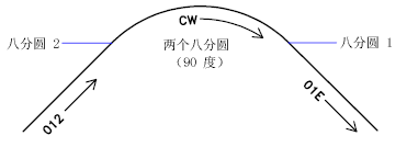 此圆弧称为八分圆弧,因为它跨越一个或多个 45 度的八分圆,起点和端点都在八分圆边界上。八分圆从时钟的 3 点的位置逆时针编号,如下图所示: