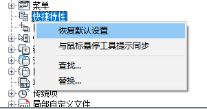 - 在“自定义”选项卡上的“<文件名> 中的自定义设置”窗格中,在“快捷特性”上单击鼠标右键。
