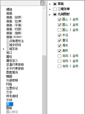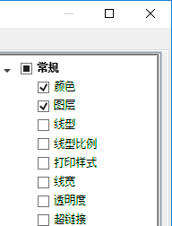 - 在“特性”窗格中,单击要在“快捷特性”选项板中为所有对象类型显示的常规特性旁边的复选框。