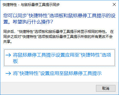 将“快捷特性”与鼠标悬停工具提示同步