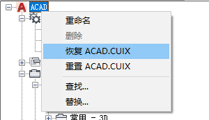 注: 重置时,仅可重置在程序安装位置下的 UserDataCache 文件夹中找到的 CUIx 文件。