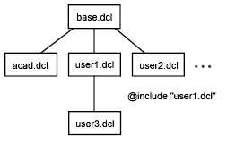 所有 DCL 文件都可以使用 base.dcl 文件中定义的切片。DCL 文件还可以使用在另一个 DCL 文件中定义的切片,方法是在所谓的 include 指令中命名另一个文件。您可以创建自己的 DCL 文件层次结构,如下图所示: ![]() 在此图中,user1.dcl 和 user2.dcl 文件彼此独立,但 user3.dcl 使用 user1.dcl 中定义的切片。include 指令的格式为: @include filename 其中 filename 是带引号的字符串,其中包含另一个 DCL 文件的全名。例如,以下指令包含一个名为 usercore.dcl 的文件: @include "usercore.dcl" 如果仅指定文件名,则 PDB 功能将首先在当前目录中搜索文件,然后在与 DCL 文件本身相同的目录(包含 include 指令的目录)中搜索该文件。如果指定完整路径名,则 PDB 功能仅搜索该路径中指定的目录。 注意:您创建的 DCL 文件不能使用 acad.dcl 中定义的对话框。不能指定 。但是,如果要创建类似的对话框,可以将定义剪切并粘贴到自己的 DCL 文件中。@include "acad.dcl"