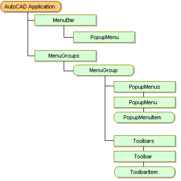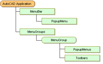 AutoCAD ActiveX 提供了多个与菜单相关的对象。最重要的两个是集合和集合。MenuBarMenuGroups 该集合包含 AutoCAD 菜单栏中显示的所有菜单。MenuBar ![]() 该集合包含在当前 AutoCAD 任务中加载的菜单组。这些菜单组包含可用于 AutoCAD 任务的所有菜单,其中部分或全部菜单可能显示在 AutoCAD 菜单栏上。除菜单外,菜单组还包含可用于当前 AutoCAD 任务的所有工具栏。MenuGroups 每个菜单组都包含一个集合和一个集合。该集合包含菜单组中的所有菜单。同样,该集合包含菜单组中的所有工具栏。PopupMenusToolbarsPopupMenusToolbars 每个实际上是一个集合,其中包含该菜单上显示的每个菜单项的单个对象。同样,每个工具栏也是一个集合,其中包含该工具栏上显示的每个工具栏项的单个对象。PopupMenu ![]() |