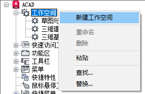 将工作空间置为当前、创建或修改工作空间,并将工作空间从局部 CUIx 文件输入主 CUIx 文件。