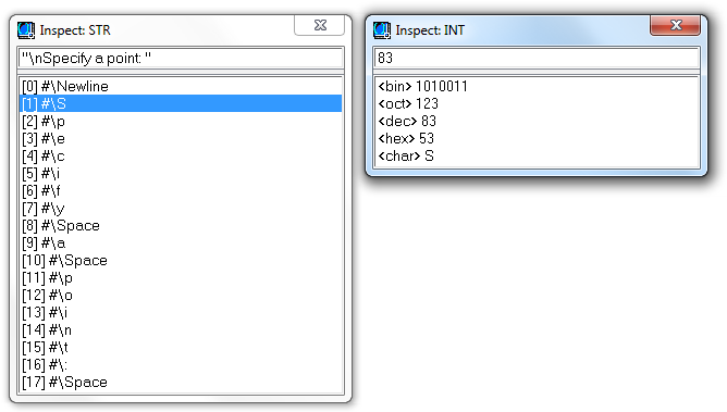 例如,如果数据是字符串或列表,则字符串或列表将分解为单个元素,例如字符或数值。双击元素线允许您在新的“检查”窗口中进一步检查该元素,例如,您可以了解数字是实数还是整数,或者字符串字符的 ASCII 值是多少。