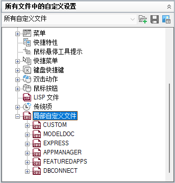 - 仅所有命令。显示每个加载的自定义文件中的所有命令。