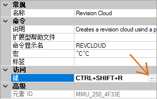 - 在“特性”窗格中,单击“键”框,然后单击 […] 按钮以打开“快捷键”对话框。