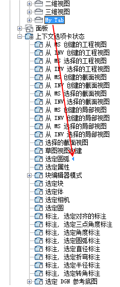 可以将功能区选项卡指定给上下文状态。 显示自定义用户界面 (CUI) 编辑器