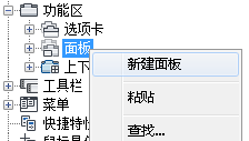 2. 在“面板”节点上单击鼠标右键。单击“新建面板”。