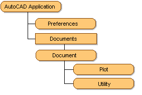AutoCAD ActiveX Automation 对象模型允许您访问应用程序首选项、打印图形或使用专用实用程序。 对象下方是一组对象,每个对象对应于“选项”对话框中的一个选项卡。这些对象一起提供对“选项”对话框中所有注册表存储设置的访问。图形存储的设置包含在对象中。还可以使用 和 方法设置和修改选项(以及不属于“选项”对话框的系统变量)。PreferencesDatabasePreferencesSetVariableGetVariable ![]() 该对象提供对“打印”对话框中设置的访问,并使应用程序能够使用各种方法打印图形。Plot 该对象提供用户输入和转换功能。用户输入函数是在 AutoCAD 命令行上提示用户输入各种类型的数据(如字符串、整数、实数、点等)的方法。转换函数是除字符串和数字处理外,还对特定于 AutoCAD 的数据类型(如点和角度)进行操作的方法。Utility |