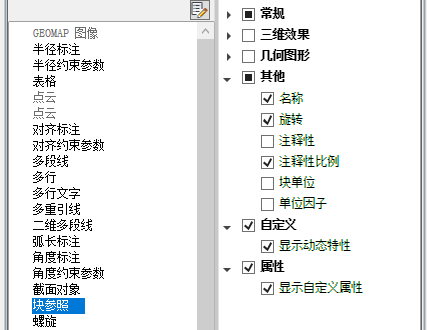 当选中“自定义”和“属性”类别时,块的动态特性和属性将显示在“快捷特性”选项板上。