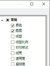 2. 在“特性”窗格中,单击要在“快捷特性”选项板中为所有对象类型显示的常规特性旁边的复选框。