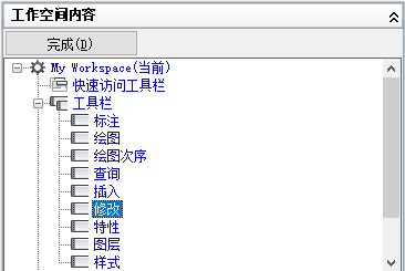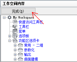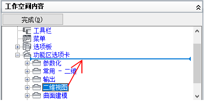 - 在“工作空间内容”窗格中,单击“功能区选项卡”节点旁边的加号 (+) 以将其展开。