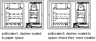 在图纸空间中,可以通过两种方式缩放任何类型的线型。比例可以基于创建对象的空间(模型或纸张)的绘图单位。 线型刻度也可以是基于纸张空间单位的统一刻度。可以使用 PSLTSCALE 系统变量为在不同视口中以不同缩放比例显示的对象保持相同的线型缩放比例。它还会影响 3D 视图中的线显示。 在下图中,模型空间中线条的图案线型通过 PSLTSCALE 系统变量在图纸空间中均匀缩放。请注意,即使对象具有不同的缩放比例,两个视口中的线型也具有相同的比例。 ![]() 使用该方法设置 PSLTSCALE 系统变量的值。SetVariable 父主题: |