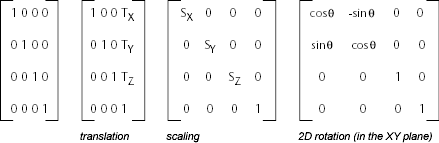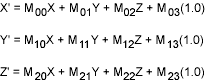 传递类型参数的函数将点视为维度为 4 的列向量。该点以齐次坐标表示,其中点向量的第四个元素是通常设置为 1.0 的比例因子。矩阵的最后一行的标称值为 [0,0,0,1];传递参数的函数会忽略它。在本例中,以下矩阵乘法是由于对某个点的变换应用而产生的:ads_matrixads_matrix ![]() 这种乘法为我们提供了该点的各个坐标,如下所示: ![]() 如这些方程所示,比例因子和矩阵的最后一行没有影响,将被忽略。这称为仿射变换。 注意:要变换向量而不是点,请不要添加平移向量M