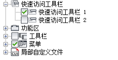 使用 CUI 编辑器来控制快速访问工具栏、功能区选项卡和面板、工具选项板、工具栏和下拉菜单的显示。