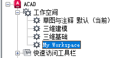 - 在“自定义”选项卡上的“<文件名> 中的自定义设置”窗格中,单击“工作空间”节点旁边的加号 (+) 以将其展开。