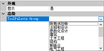 - 在“工具选项板组”框中,选择列出的工具选项板组之一,以使其与功能区选项卡相关联。