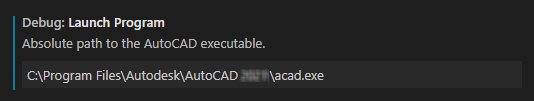 Visual Studio Code 需要连接到 AutoCAD 进行调试,此连接是通过使用调试配置建立的。