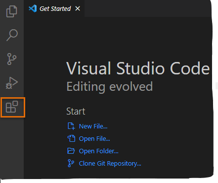 2. 在 Visual Studio Code 中的“活动栏”上,单击“扩展”(或单击“扩展”>“视图”菜单)。