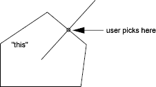 返回的点始终位于实体上 (“this”)。因此,在明显相交的情况下,相交点在返回之前会投影回图元。 该函数的两个版本都允许您提供可选的 GS 标记以优化此功能的性能。如果实体的函数已实现使用 GS 标记,则提供 GS 标记可以定位交叉区域并加快测试速度。例如,在下图中,如果用户选择多边形的一条线,则传入该线的 GS 标记无需测试多边形的其他五条线。intersectWith()intersectWith() ![]() 父主题: |